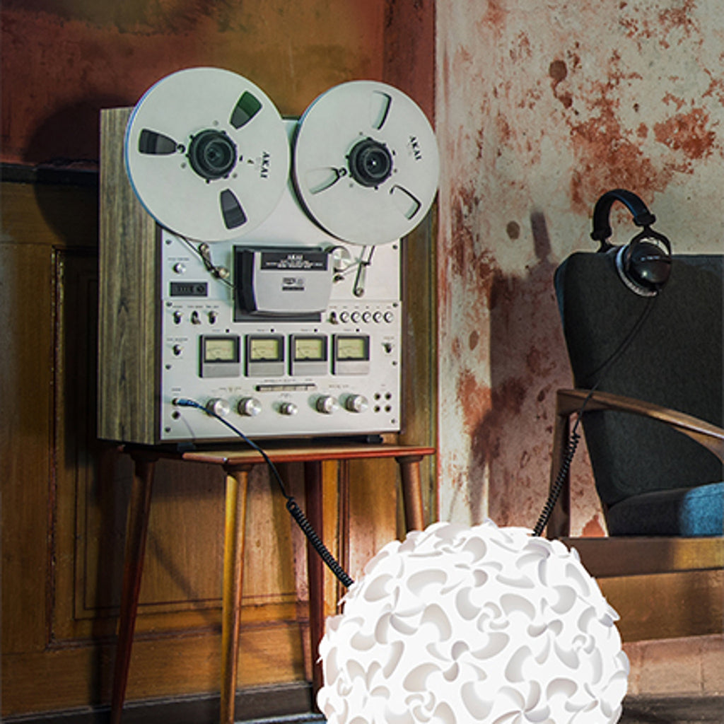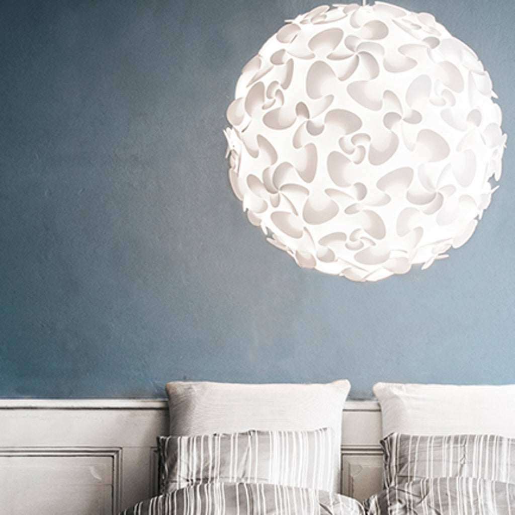 "The Lora lampshade resembles a sphere of flowers and has a clever design that leads your eyes around its round shape"